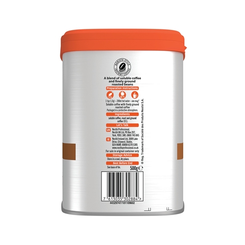 Superb Barista-style coffee which is rich, dark and deliciously tempting. With an intense aroma and a rich taste, this coffee combines all the flavour of roasted coffee in a simple instant format, for a quick and delicious cup of coffee any time of the day. The coffee is finely ground for a smooth and inviting cup every time. This premium tin has click-to-close technology to lock in freshness and contains 500g of coffee, which makes approximately 277 cups.